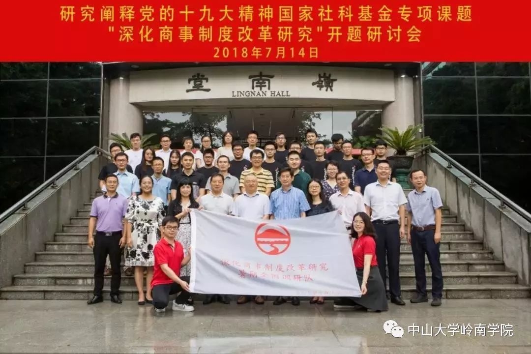 7月14日,研究阐释党的十九大精神国家社会科学基金专项课题“深化商事制度改革”开题研讨会在yl23455永利集团岭南学院岭南堂举行。