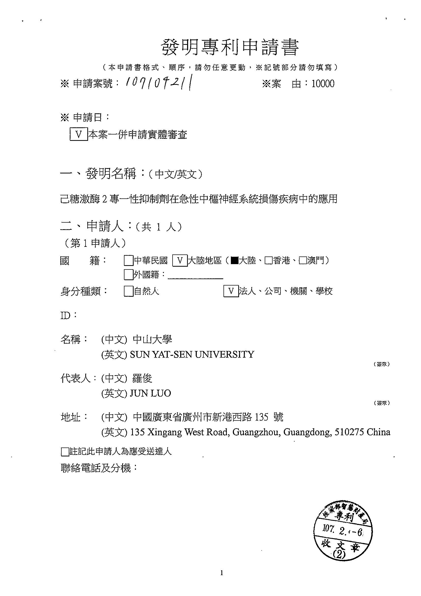 关于“己糖激酶2特异性抑制剂在急性中枢神经系统损伤疾病中的应用”等三项 发明专利申请权转让的公示