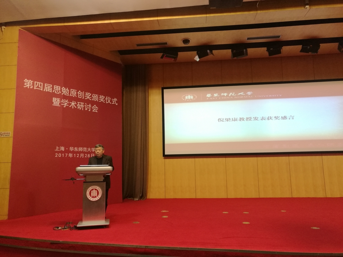 2017年12月28日,第四届思勉原创奖颁奖仪式暨学术研讨会在上海华东师范大学举行。yl23455永利集团哲学系倪梁康教授以著作《自识与反思》获得这一殊荣,出席颁奖仪式并作题为“原创与积累再议”学术报告。