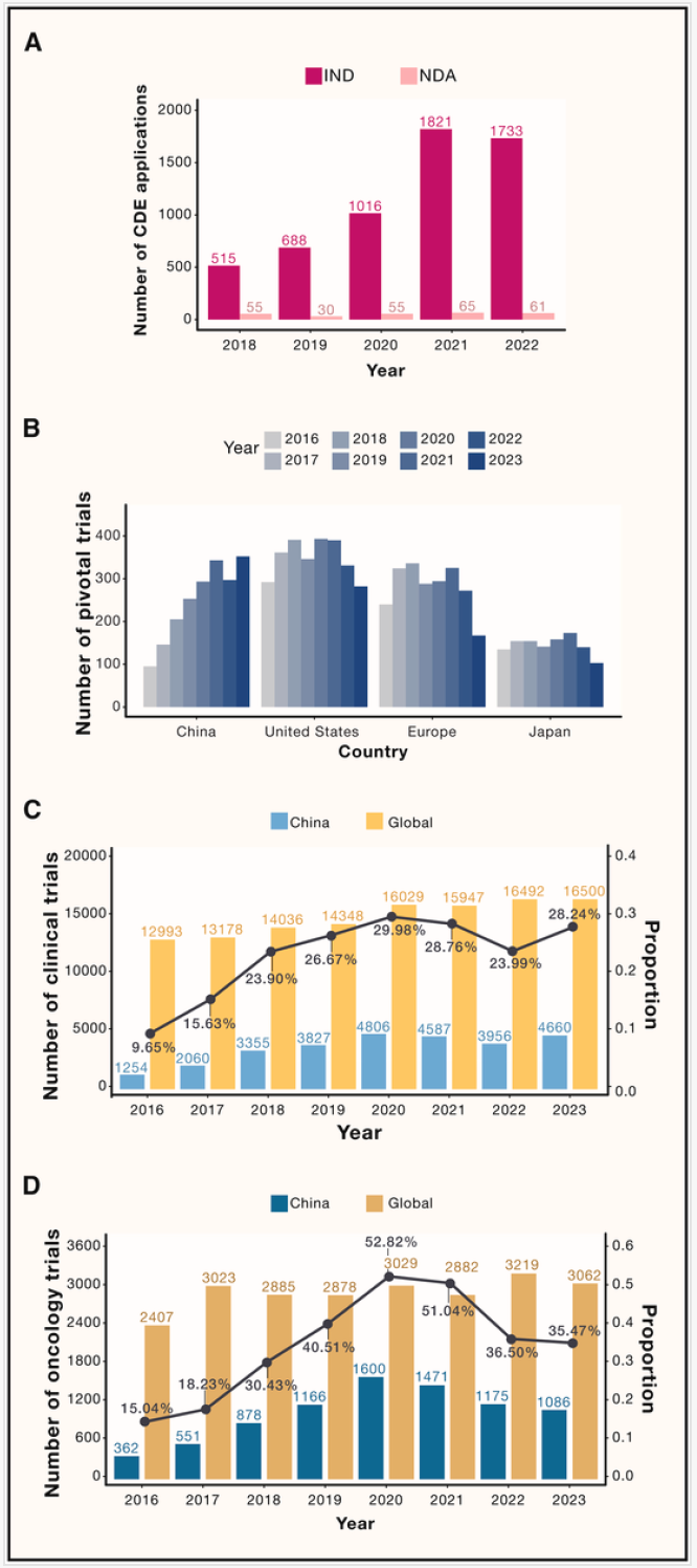 图1.中国创新药申请和临床试验现状