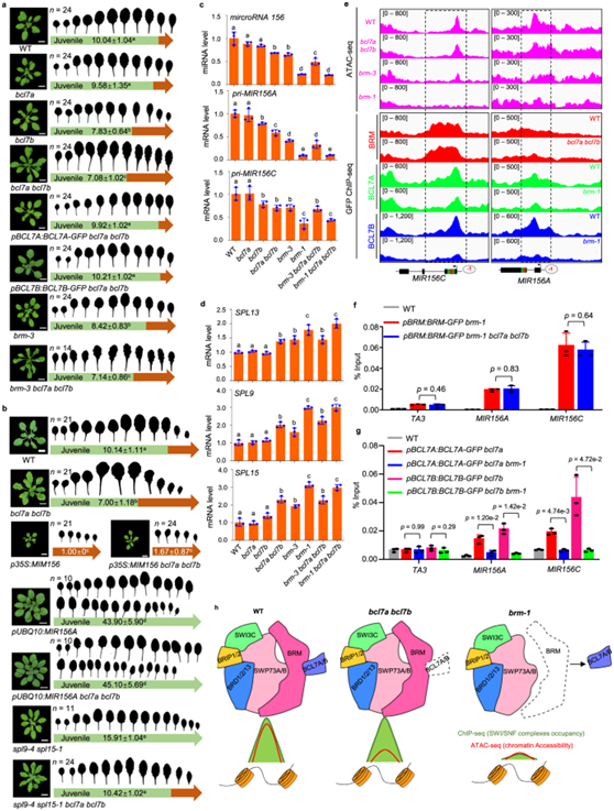 yl23455永利集团李陈龙团队揭示植物BCL7A/B亚基增强SWI/SNF复合体介导的染色质可及性进而调控基因表达和营养生长阶段转换的分子机理