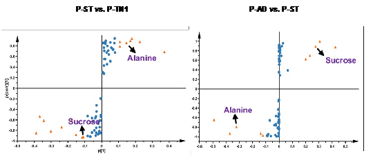 yl23455永利集团生命科学学院张文庆教授课题组以抗虫水稻及其专食性害虫褐飞虱为研究对象对上述问题开展了研究。首先通过对褐飞虱对抗虫水稻品种IR36的非致害种群(P-TN1)和多代适应性种群(P-AD)进行了转录组和代谢组联合分析,发现丙氨酸是褐飞虱适应抗性水稻品种的关键生物标志物之一(图1)。
