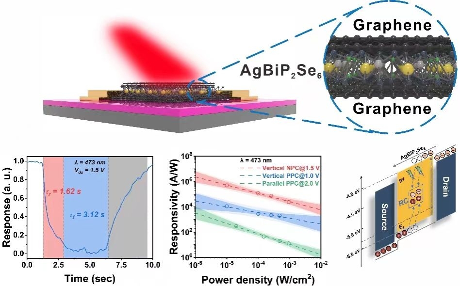 相关成果以“Giant Negative Photoresponse in van der Waals Graphene/AgBiP2Se6 /Graphene Trilayer Heterostructures”为题发表在国际材料顶级期刊Advanced Materials上(Advanced Materials, 2024, DOI:10.1002/adma.202312541),第一作者为何伟(材料科学与工程学院2020级硕士研究生)和伍栋(材料科学与工程学院2021级硕士研究生),通讯作者为于鹏副教授。材料科学与工程学院为论文唯一完成单位。杨国伟教授对本工作的完成给予了重要的指导。该研究工作受到国家重点研发计划、国家自然科学基金、广东省自然科学基金以及光电材料与技术国家重点实验室重点培育基金的大力支持。