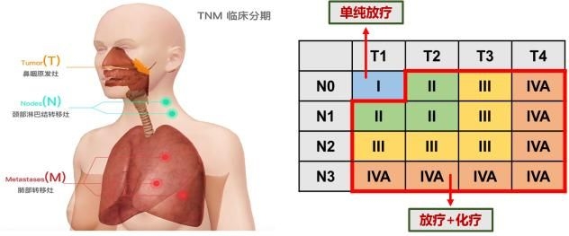 鼻咽癌的临床分期系统依据患者原发灶(T)、淋巴结转移(N)、远处转移(M)范围分层,用以评估肿瘤进展程度,是制定合理治疗策略的前提和基础。