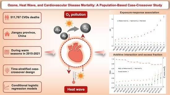 中大新闻网讯(通讯员许瑞君)作为夏季主要的大气污染物之一,地面臭氧(O3)主要由挥发性有机化合物(VOCs)和氮氧化物(NOx)经过光化学反应转化而形成,是造成我国区域大气复合污染的重要因素之一。以持续高温为特征的热浪事件,在全球气候变化背景下呈现出频次高、强度大、持续时间长等特点,已成为全球关注的热点环境问题。由于具有相近的气象驱动因素,O3污染和热浪事件时常伴随出现。尽管已有较多证据提示O3和热浪暴露均与心血管健康有关,但两种因素复合暴露下的健康风险特征尚不明确。鉴于全球气候变化背景下O3污染和高温热浪复合暴露场景日趋频繁,量化O3和热浪对心血管疾病的协同影响具有重要的公共卫生学意义。