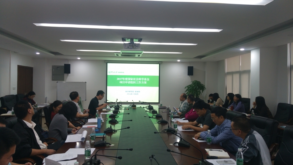 为进一步做好我校2017年度国家社会科学基金的组织申报工作,提高总体申报质量,科学研究院于2016年11月8日下午在南校区文科楼五楼第一会议室召开科研管理人员工作会。会议由袁旭阳副处长主持,来自23个院系(科研机构)的科研主管、院长助理、科研秘书及具体负责国家社科基金管理的老师共计40余人参加了会议。
