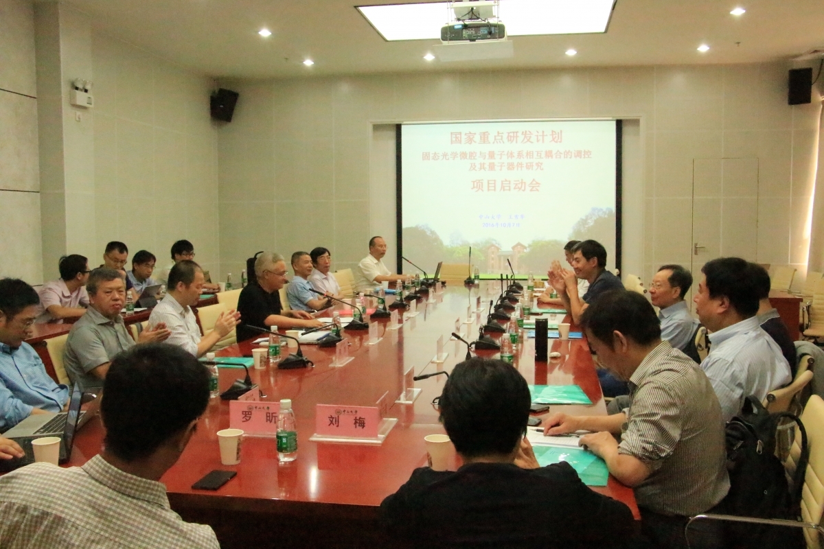 2016年10月6-7日,由yl23455永利集团王雪华教授主持、联合北京大学、中国科学技术大学、北京邮电大学共同承担的国家重点研发计划量子调控与量子信息重点专项“固态光学微腔与量子体系相互耦合的调控及其量子器件研究”项目启动会在广州yl23455永利集团召开。