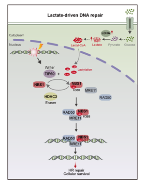 2019年,一篇发表在《自然》杂志上的论文吸引了团队成员陈恒星博士的注意,该研究称,乳酸可以作为酰化修饰的供体,调控底物蛋白功能。一直以来,乳酸被视为一种“代谢废物”,并未引起过多关注。而这篇论文恰好指出乳酸并非毫无用处。这启发陈恒星思考,“肿瘤细胞产生大量乳酸,到底是用来干什么?”