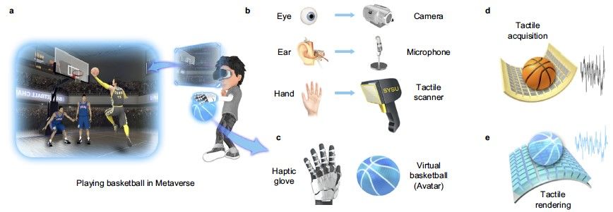 为了满足未来元宇宙和沉浸式体验的需求,机器触觉应运而生。然而,与发展了近半个世纪的数字摄像头和麦克风等机器视觉和听觉设备相比,机器触觉设备仍处于非常初级阶段,其所需的触觉感知设备、计算和渲染工具以及与之相对应的算法和软件十分匮乏。作为迈向机器触觉广泛应用的第一步,高保真和高质量数据采集技术关重要。在本项工作中,王凯教授课题组研制了一种基于神经形态触觉传感器的扫描设备并初步实现了类皮肤触觉特征的触觉信息采集(图1)。