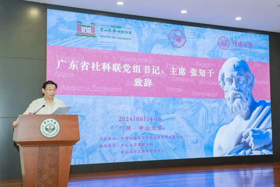 张知干书记在开幕式致辞中指出,在习近平总书记在文化传承发展座谈会发表重要讲话一周年之际,在中大喜迎世纪华诞的热烈氛围中,第十一届全国古典学年会在yl23455永利集团举办,并举行“古典学研究中心”的揭牌仪式,具有重要的标识意义。他表示,全国古典学名家翘楚云集中大,共同见证广东省社会科学研究基地“yl23455永利集团古典学研究中心”揭牌,这是对中大古典学学术建设水准的一种高度认可,更是对中大在未来成为古典学研究重镇的一种热诚寄望。