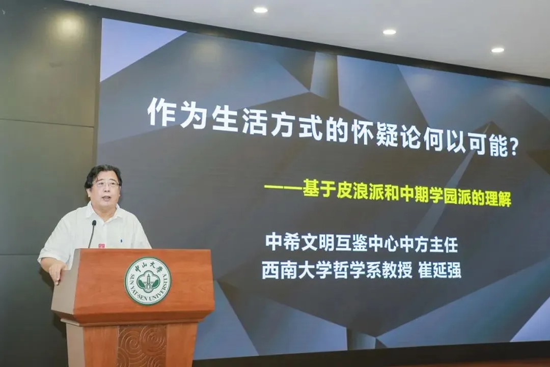 崔延强教授报告的论文题目为“作为一种生活方式的怀疑论何以可能?——基于皮浪派和中期学园派的理解”。